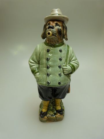 Figürliche Majolika Hunde Flasche